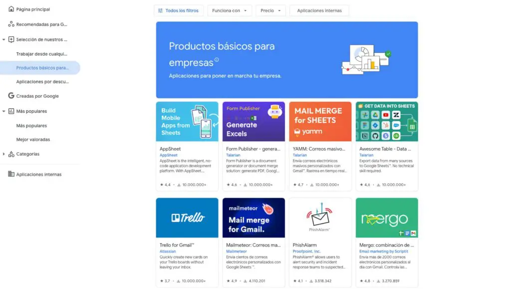 Google Workspace Marketplace es un gran lugar para encontrar y utilizar complementos (add-ons) y herramientas de terceros para aumentar la productividad y resolver problemas empresariales comunes. Por su amplia gama de aplicaciones es el sitio perfecto para hacer una selección de las soluciones empresariales que se integran con Google Workspace.